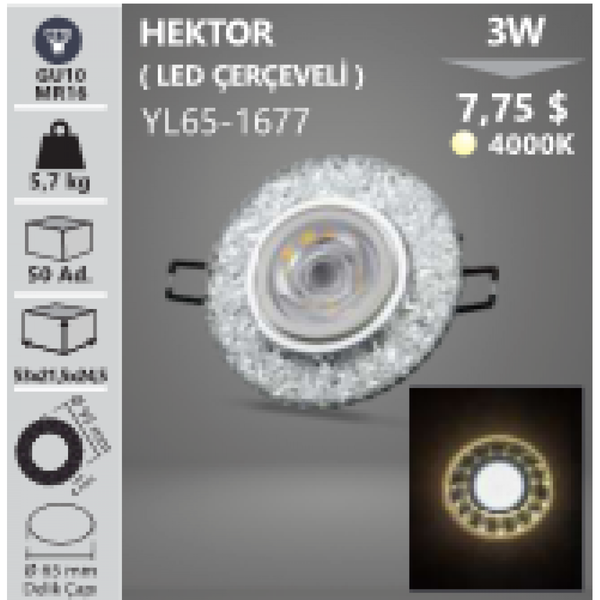 3W Ledli Hektor Kristal Kasa